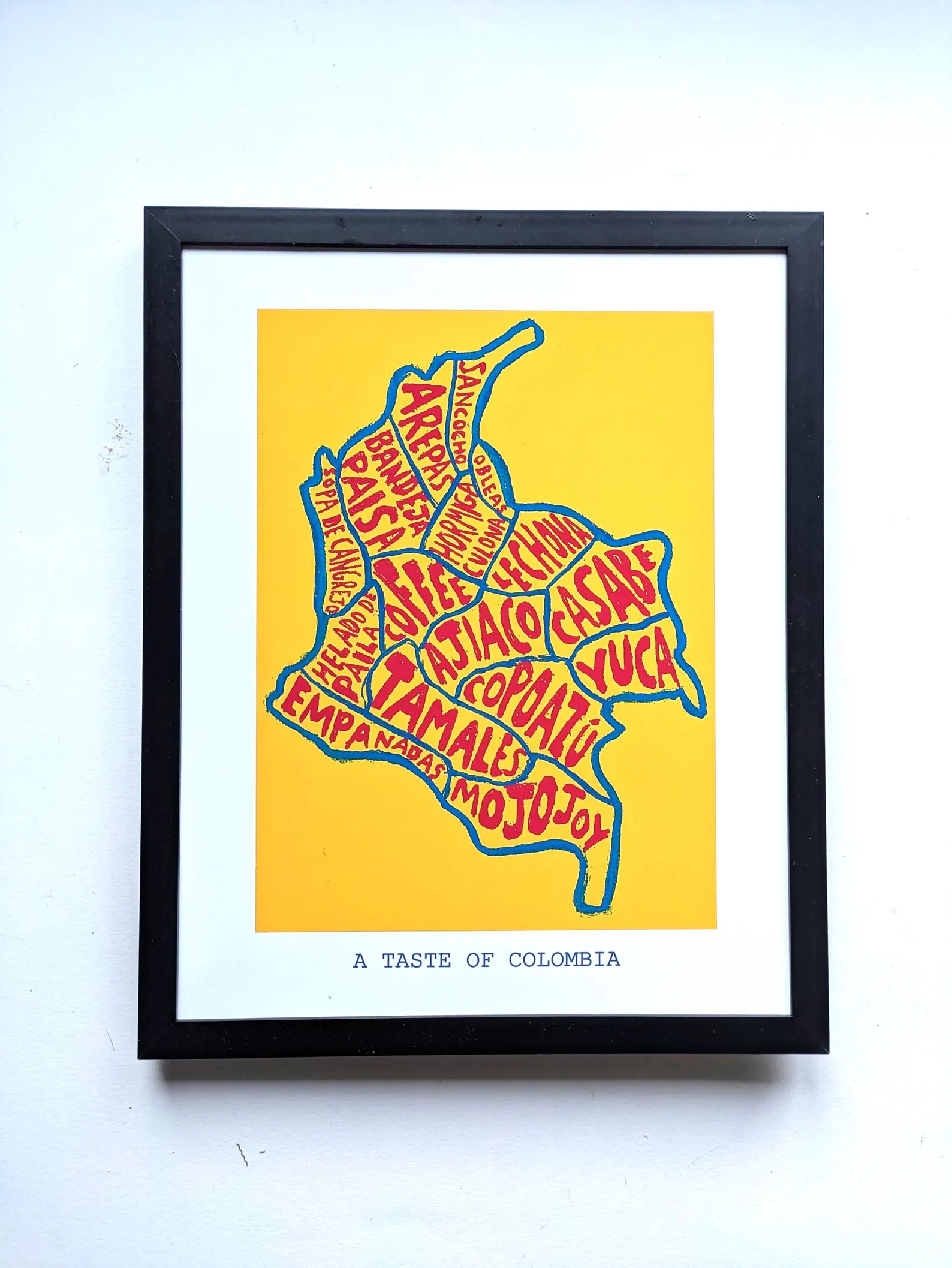 A colourful map exploring some of the foods and drinks associated with Colombia. It’s part of my project to try and eat my way around the world country by country.